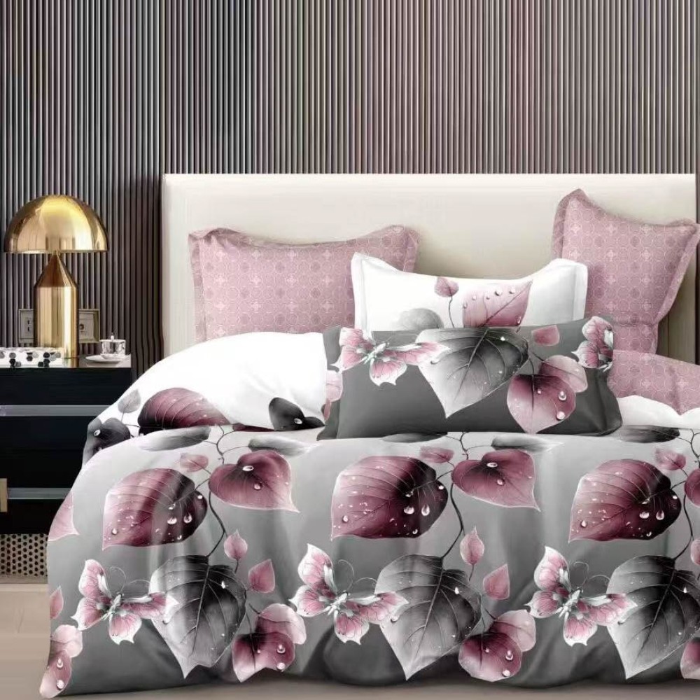 Lenjerie pat dublu cu Elastic, bumbac satinat, Gri, frunze, Casa Creative Elegance Pucioasa, cod produs: SKT-SE-06