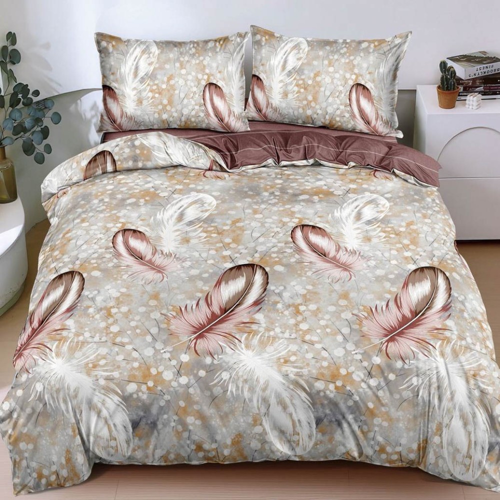 Lenjerie pat dublu cu Elastic, bumbac satinat, Gri, pene, fulgi, Johny Home Pucioasa, cod produs: SPR-E-157