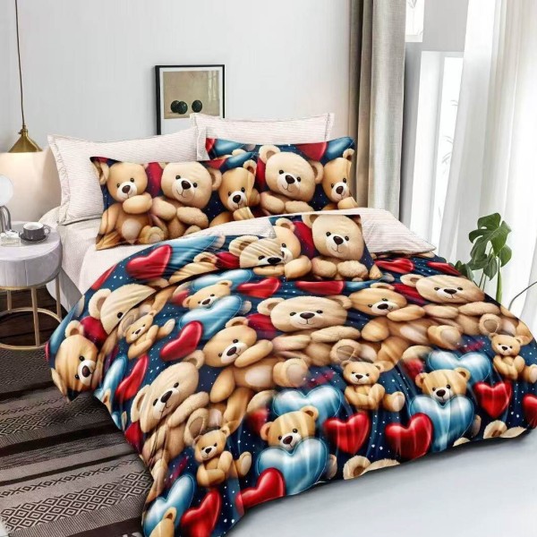 Lenjerie pat dublu cu Elastic, bumbac satinat, Maro, ursuleti, Casa Creative Elegance Pucioasa, cod produs: SKT-SE-04