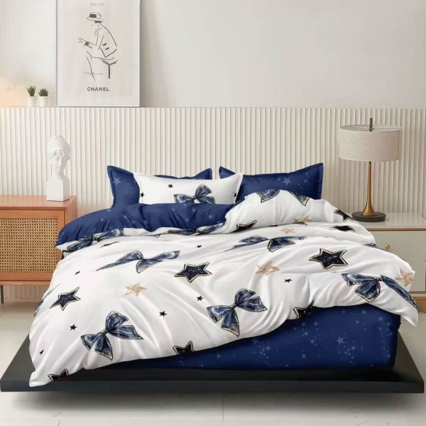 Lenjerie pat dublu cu ELASTIC, Finet, 6 piese, Alb, Albastru, stelute si fundite, Talo, cod produs: SKT-FE-18
