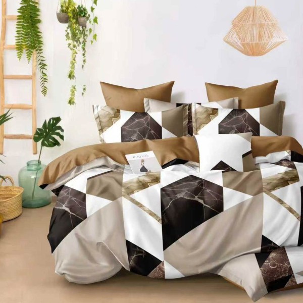 Lenjerie pat dublu cu ELASTIC, Finet, 6 piese, Alb, Bej, forme geometrice, Talo, cod produs: SKT-FE-04
