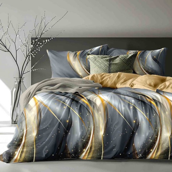 Lenjerie pat dublu cu ELASTIC, Finet, 6 piese, Gri, abstract, Talo, cod produs: SKT-FE-33