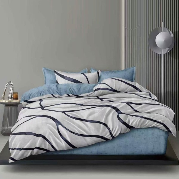 Lenjerie pat dublu cu ELASTIC, Finet, 6 piese, Gri, Albastru, abstract, Talo, cod produs: SKT-FE-26