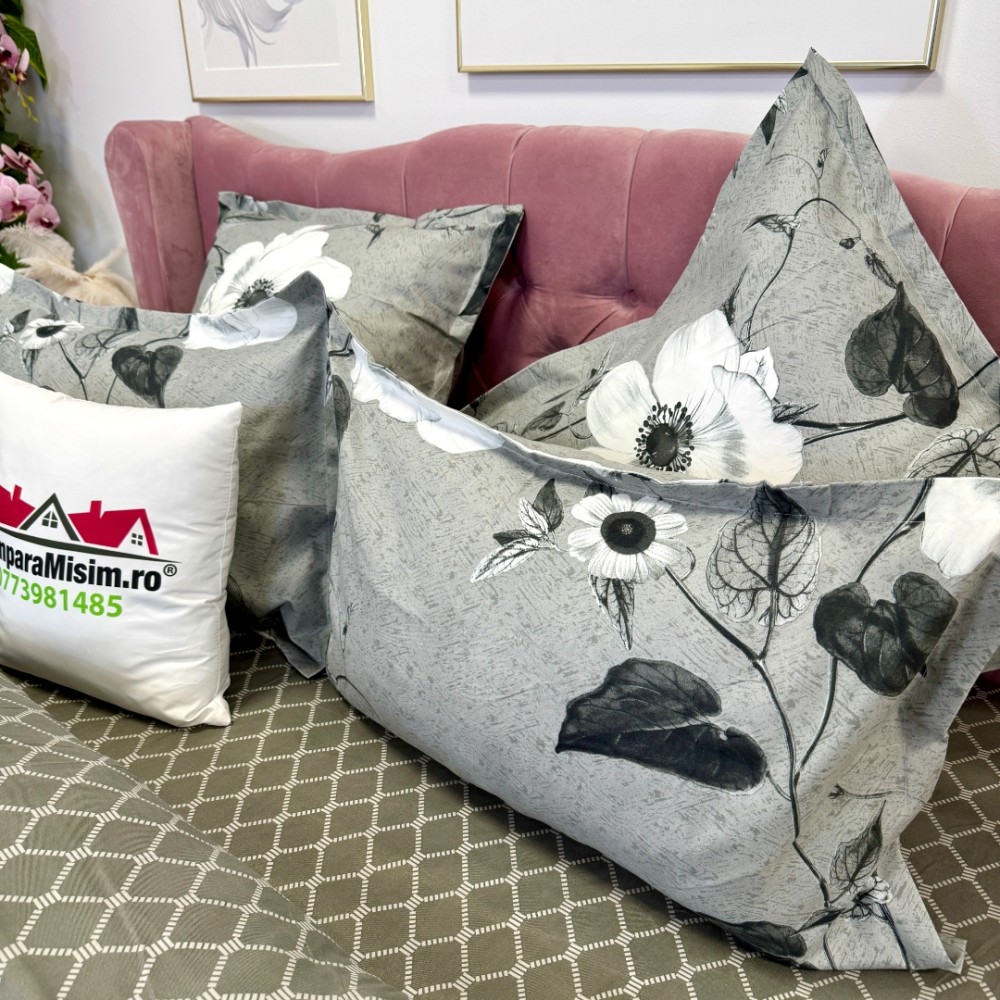 Notă: Imaginile sunt cu titlu de prezentare. Imprimeul fețelor de pernă poate varia în funcție de croirea materialului. Fețele de pernă pătrate și dreptunghiulare sunt în aceeași culoare.