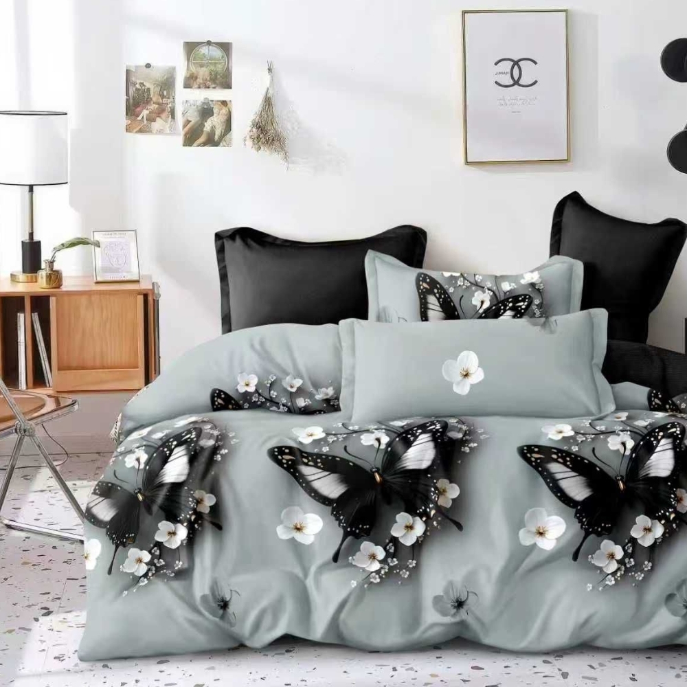 Lenjerie pat dublu cu ELASTIC, Finet, 6 piese, Gri, fluturi, Talo, cod produs: SKT-FEX-48