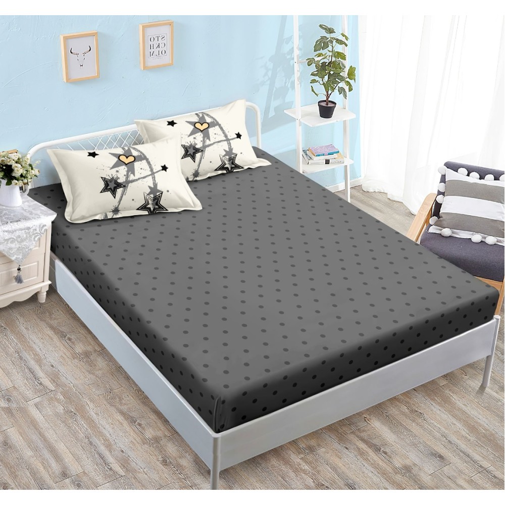 Lenjerie pat dublu cu ELASTIC, Finet, 6 piese, Gri, stelute, Johny Home Pucioasa, cod produs: SPR-T-341