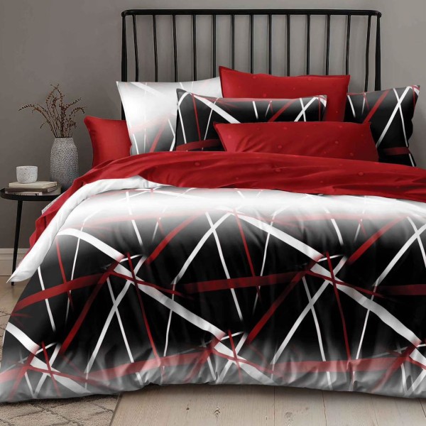 Lenjerie pat dublu cu ELASTIC, Finet, 6 piese, Rosu, Alb, Negru, dungi, Talo, cod produs: SKT-FE-28