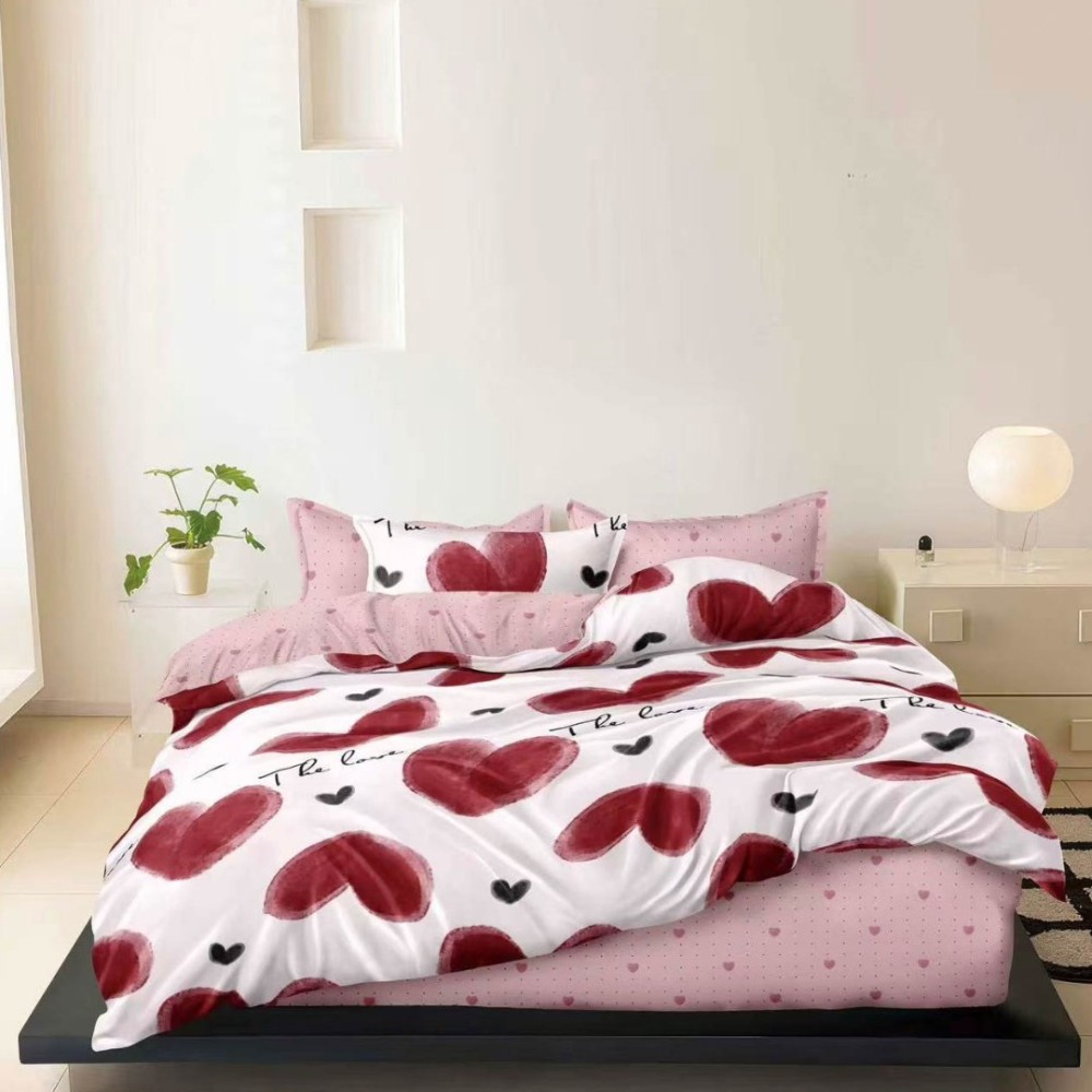 Lenjerie pat dublu cu ELASTIC, Finet, 6 piese, Roz, inimioare, Talo, cod produs: SKT-FE-23