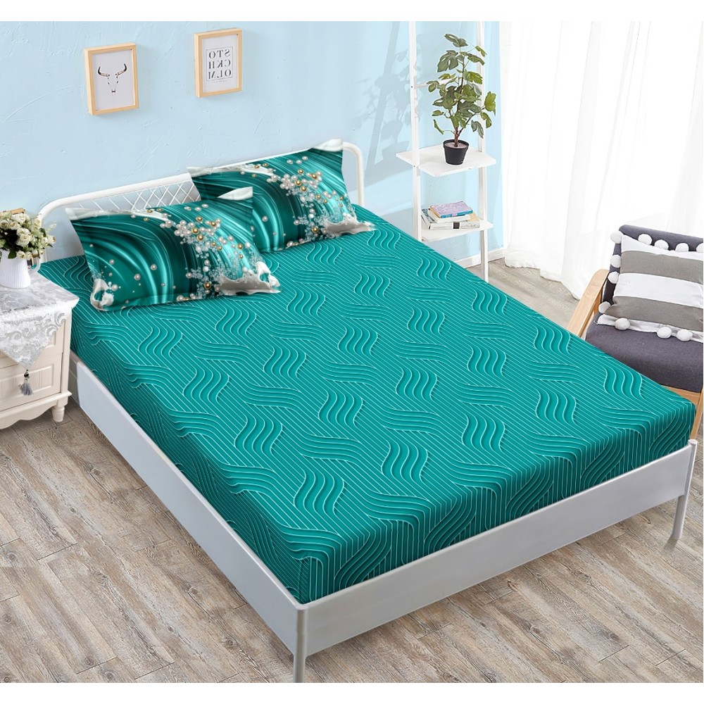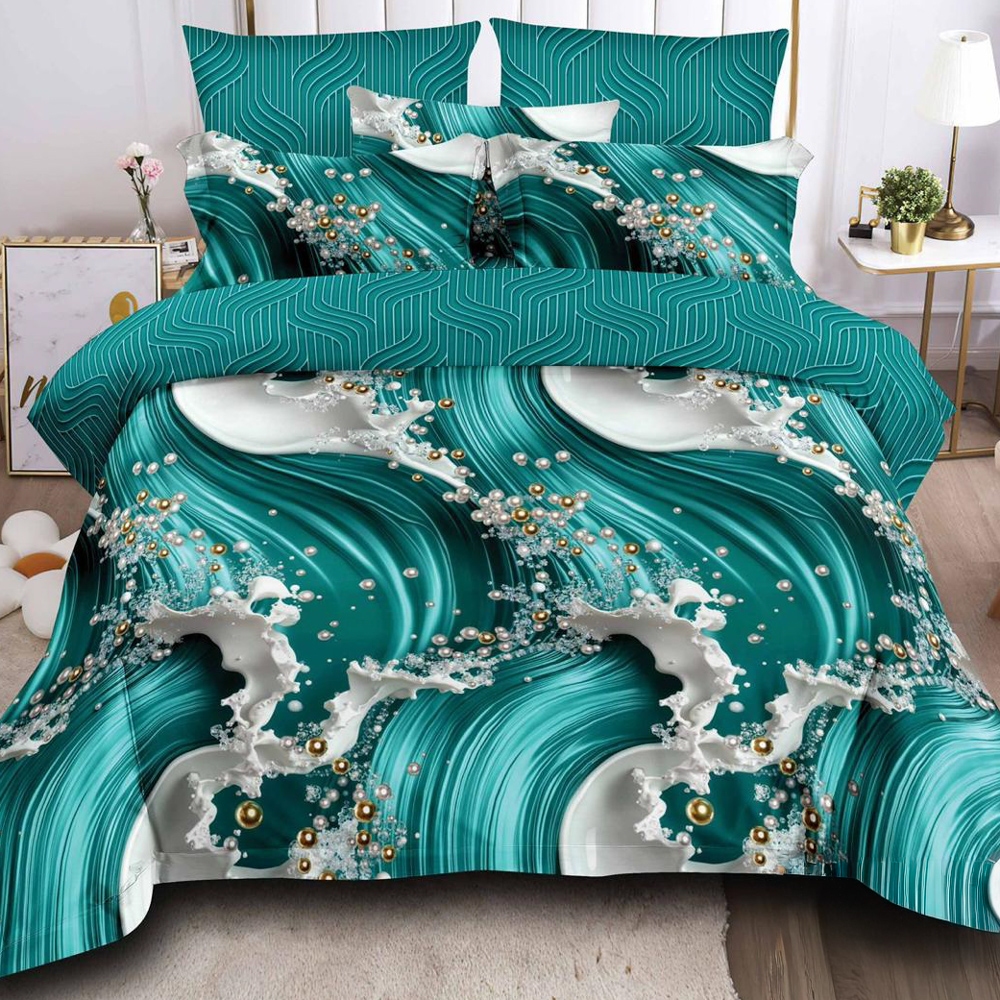 Lenjerie pat dublu cu ELASTIC, Finet, 6 piese, Verde, abstract, Johny Home Pucioasa, cod produs: SPR-T-330