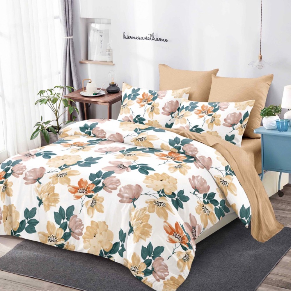 Lenjerie Pat Dublu, FINET, 6 piese, Alb, Bej, Flori, Super Design Pucioasa, cod produs: SDP-FNC-646
