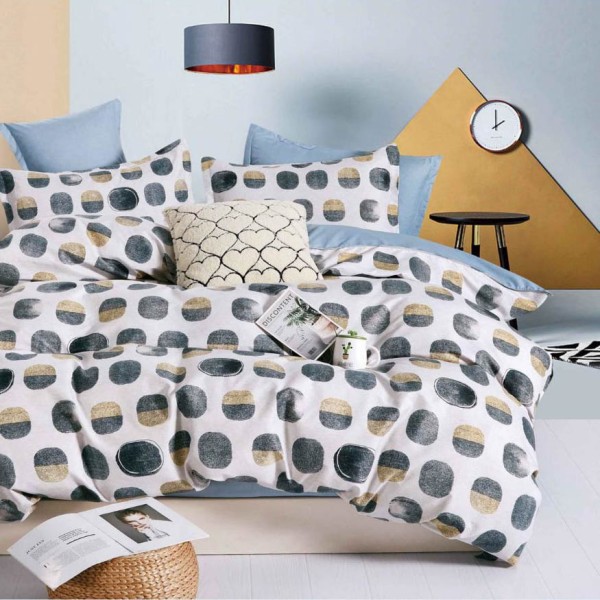 Lenjerie pat dublu, Finet, 6 piese, Alb, Bleu, buline, Talo, cod produs: SKT-FN-20