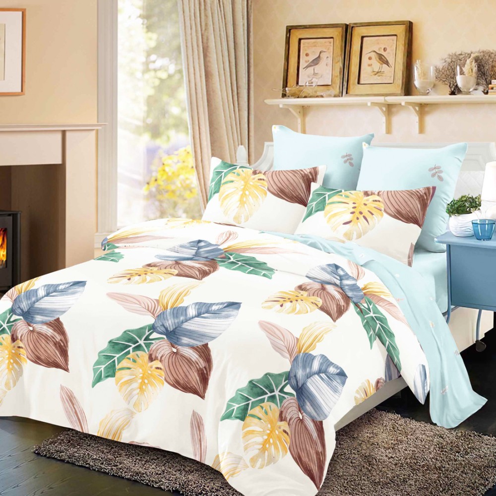 Lenjerie Pat Dublu, FINET, 6 piese, Alb, Bleu, Frunze Colorate, Super Design Pucioasa, cod produs: SDP-FNC-618