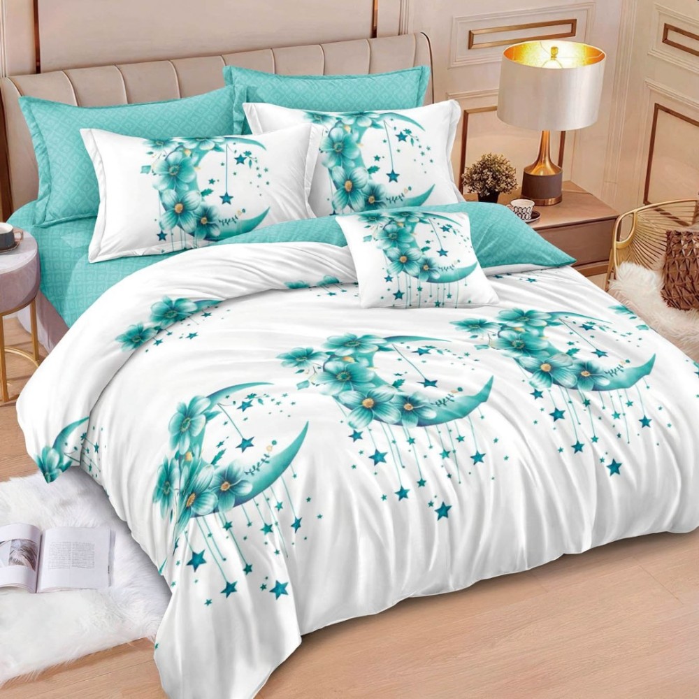 Lenjerie pat dublu, Finet, 6 piese, Alb, Bleu, luna si stele, Johny Home Pucioasa, cod produs: SPR-xR60-629