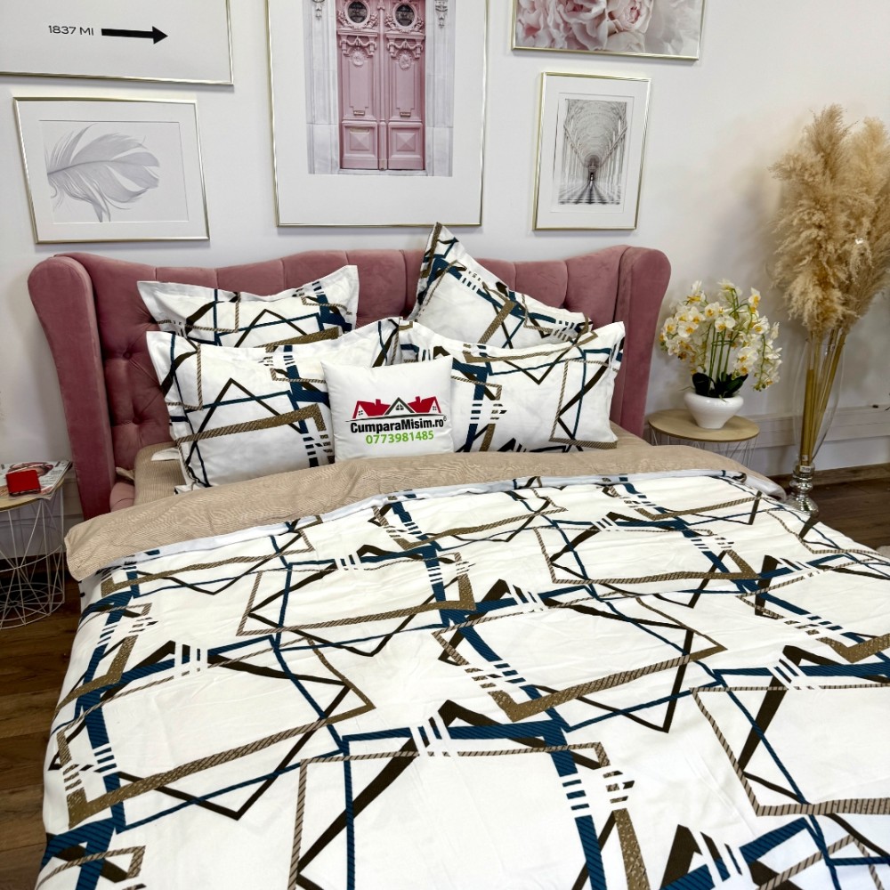 Notă: Imaginile sunt cu titlu de prezentare. Pot exista mici diferențe de nuanță în funcție de setările ecranului. Imprimeul fețelor de pernă poate varia în funcție de croirea materialului.