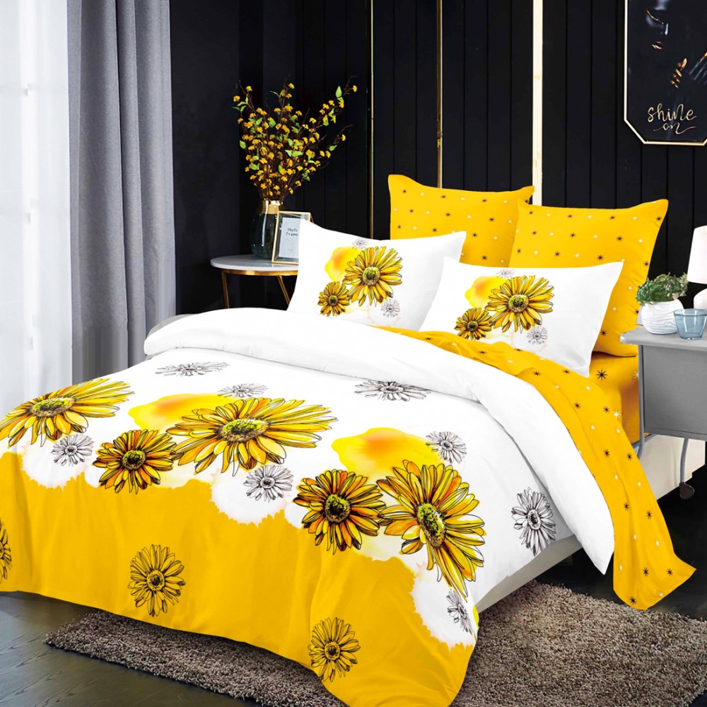 Lenjerie Pat Dublu, FINET, 6 piese, Alb, Galben, Flori, Super Design Pucioasa, cod produs: SDP-FNC-771