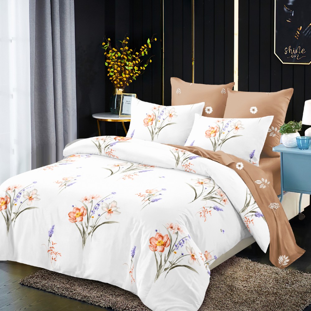 Lenjerie Pat Dublu, FINET, 6 piese, Alb, Maro, Flori, Super Design Pucioasa, cod produs: SDP-FNC-675