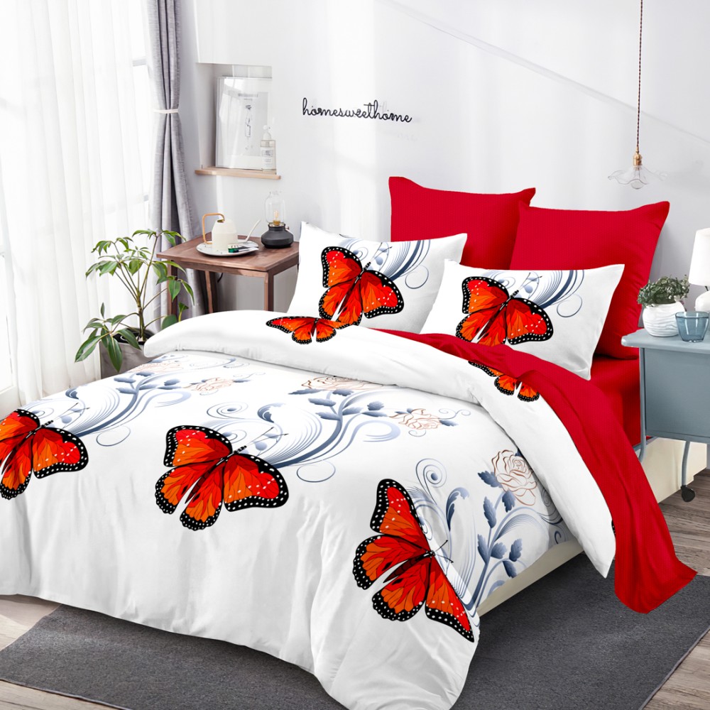Lenjerie Pat Dublu, FINET, 6 piese, Alb, Rosu, Fluturi, Super Design Pucioasa, cod produs: SDP-FNC-849
