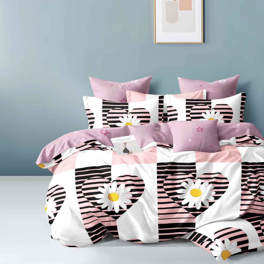 Lenjerie pat dublu, Finet, 6 piese, Alb, Roz, inimioare, Talo, cod produs: SKT-FN-33
