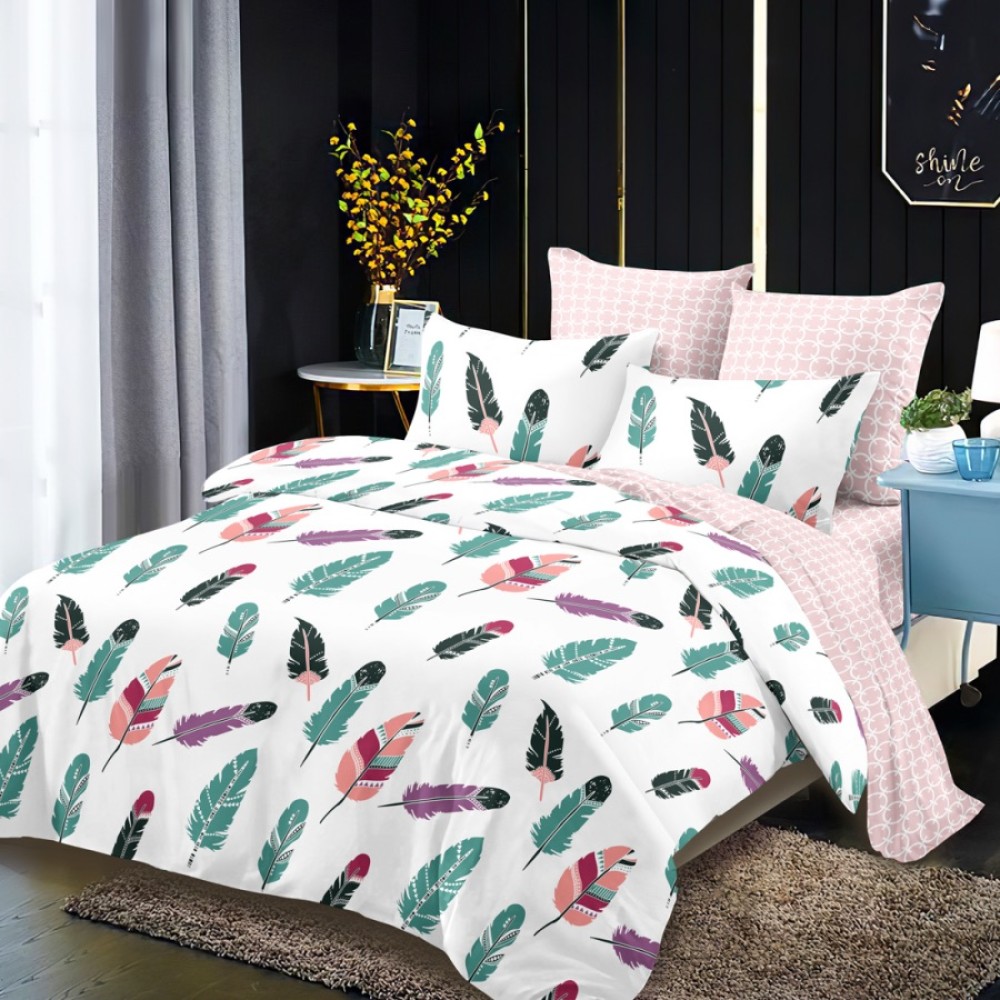 Lenjerie Pat Dublu, FINET, 6 piese, Alb, Roz, Pene, Super Design Pucioasa, cod produs: SDP-FNC-637