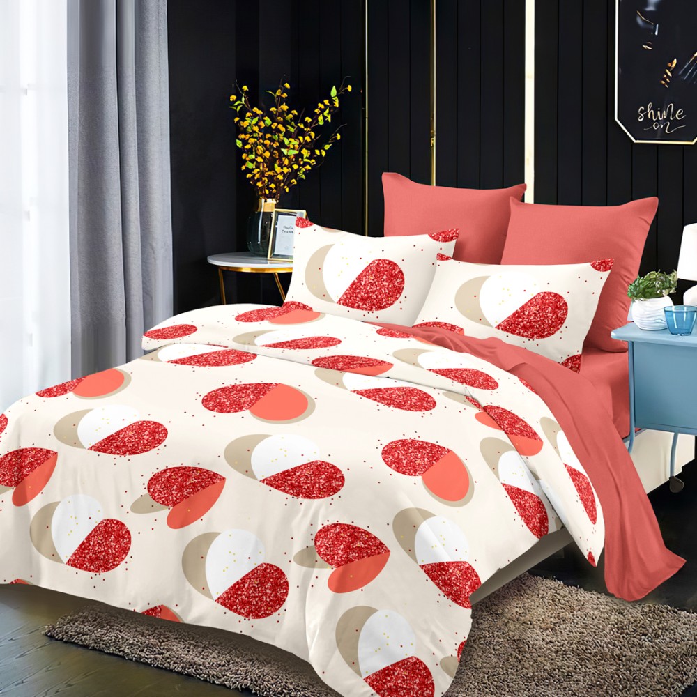 Lenjerie Pat Dublu, FINET, 6 piese, Alb, Somon, Inimioare, Super Design Pucioasa, cod produs: SDP-FNC-739