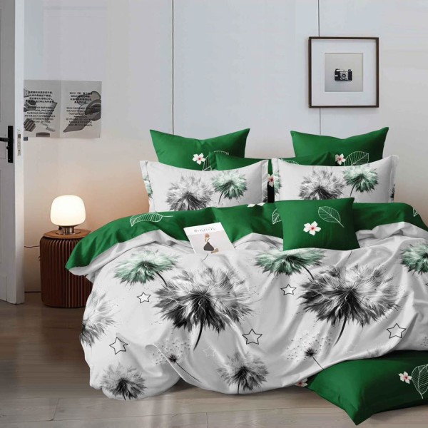 Lenjerie pat dublu, Finet, 6 piese, Alb, Verde, flori, Talo, cod produs: SKT-FN-13