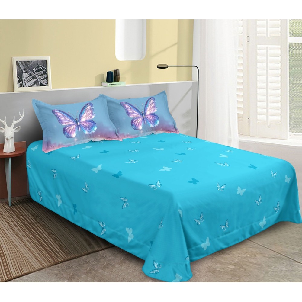 Lenjerie pat dublu, Finet, 6 piese, Albastru, fluturi, Johny Home Pucioasa, cod produs: SPR-xR60-623