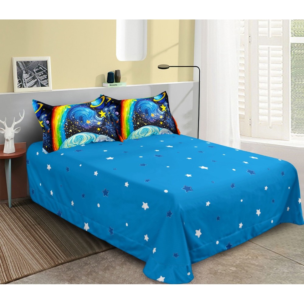 Lenjerie pat dublu, Finet, 6 piese, Albastru, galaxii, Johny Home Pucioasa, cod produs: SPR-xR60-613
