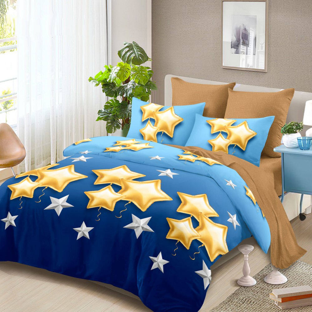 Lenjerie Pat Dublu, FINET, 6 piese, Albastru, Maro, Stelute, Super Design Pucioasa, cod produs: SDP-FNC-856