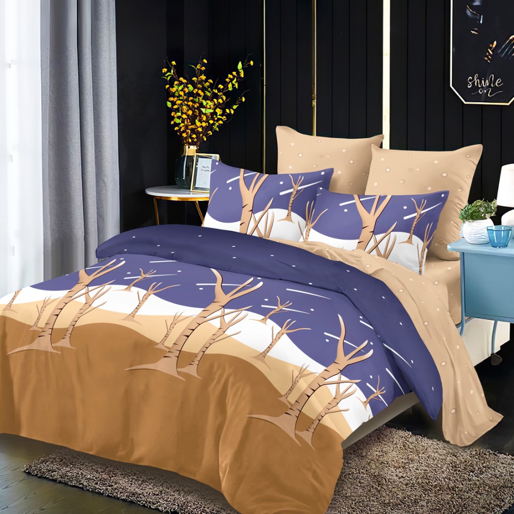 Lenjerie Pat Dublu, FINET, 6 piese, Albastru, Maroniu, Trunchiuri de Copaci, Super Design Pucioasa, cod produs: SDP-FNC-656