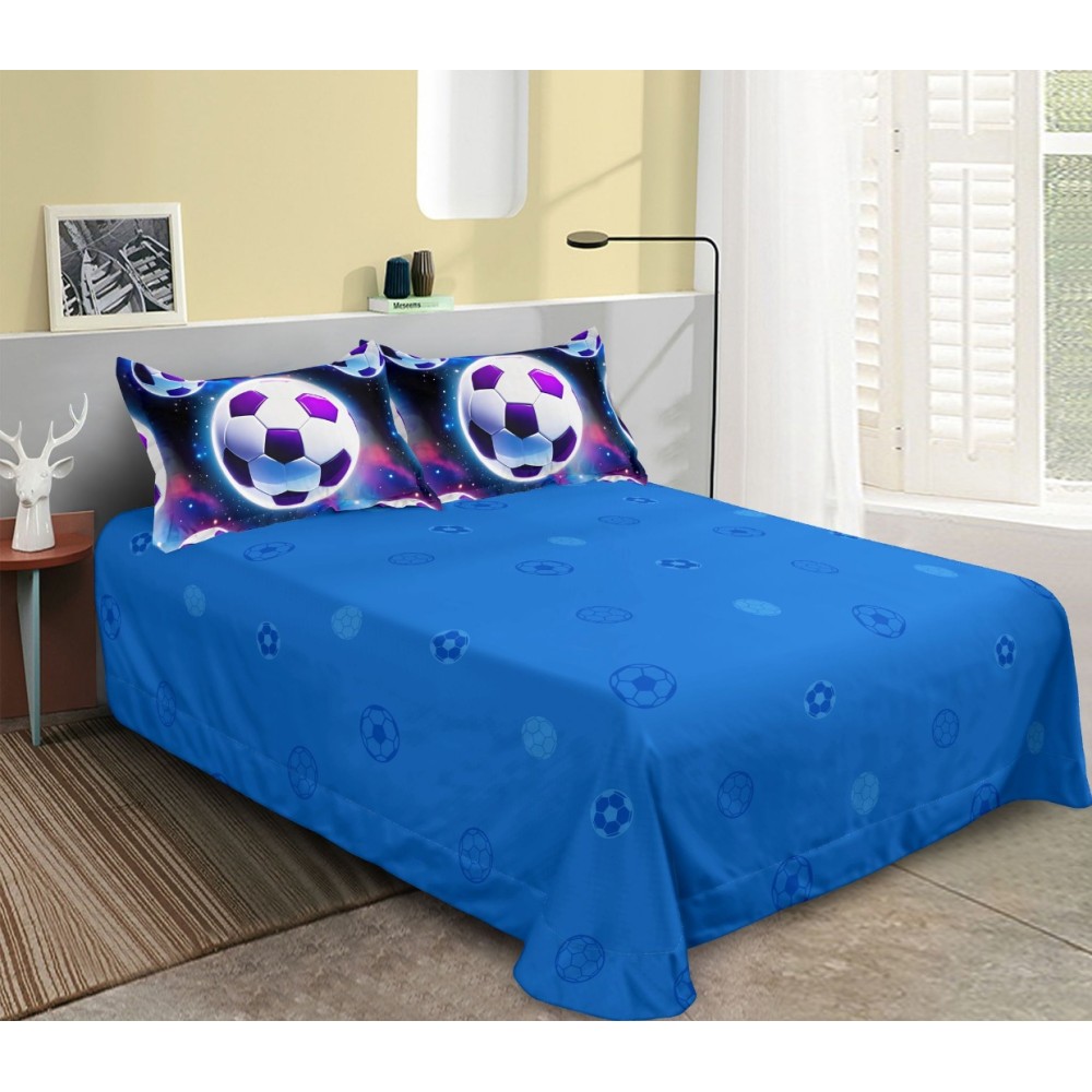 Lenjerie pat dublu, Finet, 6 piese, Albastru, mingii de fotbal, Johny Home Pucioasa, cod produs: SPR-R60-616