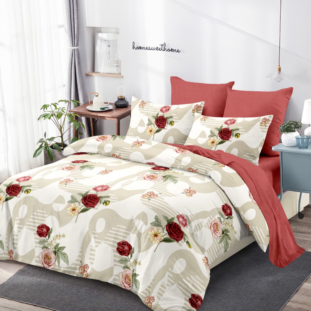 Lenjerie Pat Dublu, FINET, 6 piese, Bej, Caramiziu, Flori, Super Design Pucioasa, cod produs: SDP-FNC-783