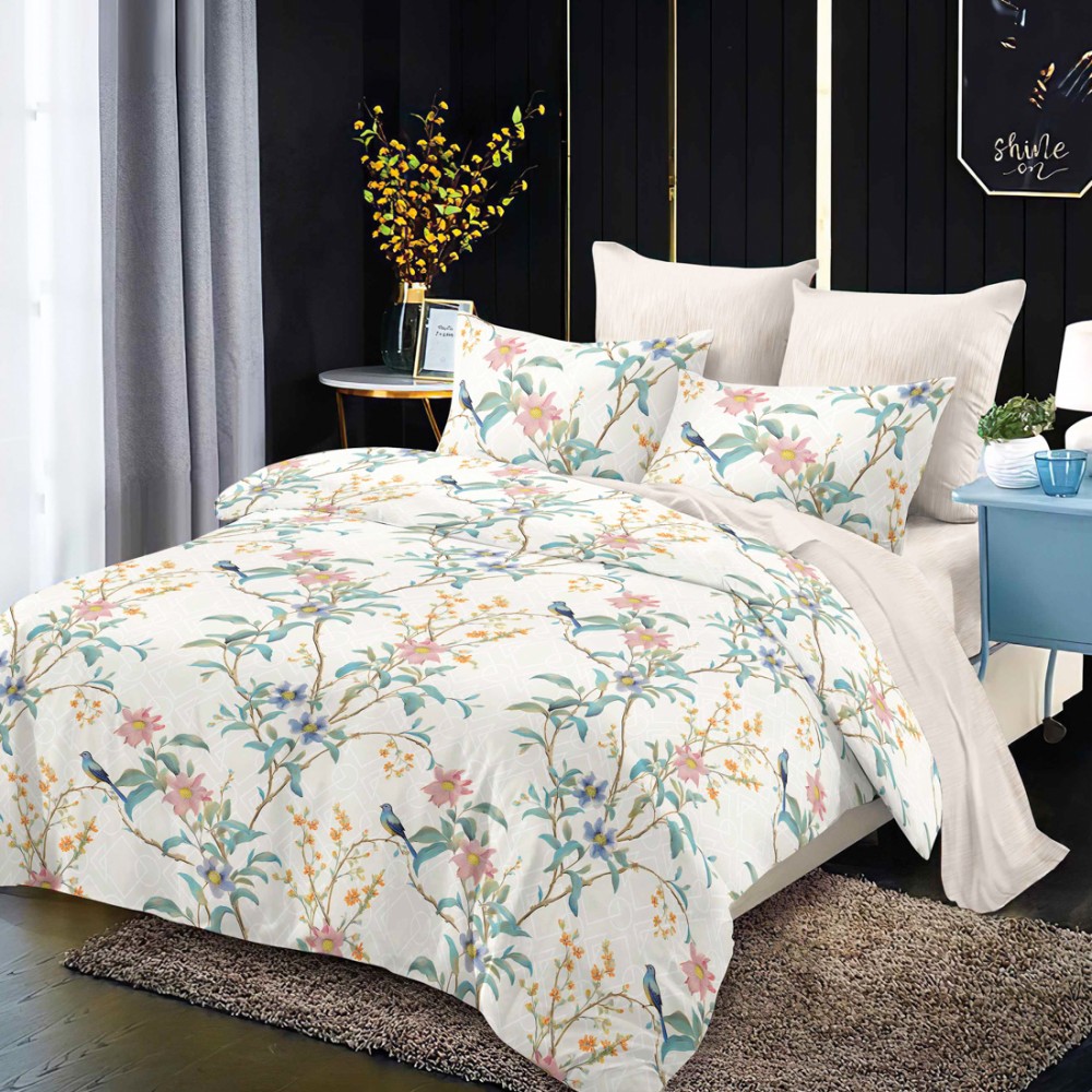 Lenjerie Pat Dublu, FINET, 6 piese, Bej deschis, Flori, Super Design Pucioasa, cod produs: SDP-FNC-714