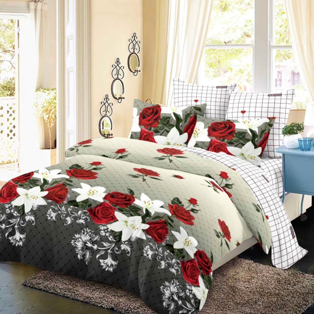 Lenjerie Pat Dublu, FINET, 6 piese, Bej, Gri, Trandafiri, Crini, Super Design Pucioasa, cod produs: SDP-FNC-683