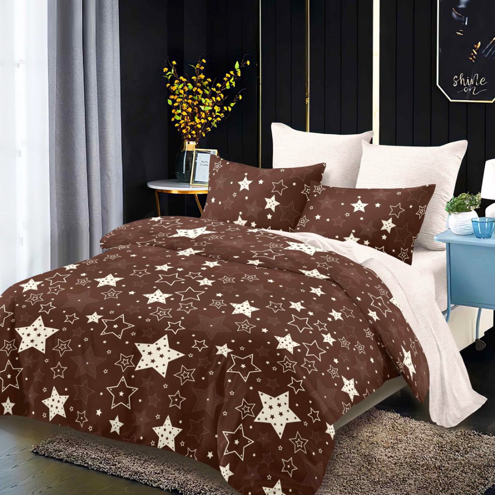 Lenjerie Pat Dublu, FINET, 6 piese, Bej, Maro, Stelute, Super Design Pucioasa, cod produs: SDP-FNC-870