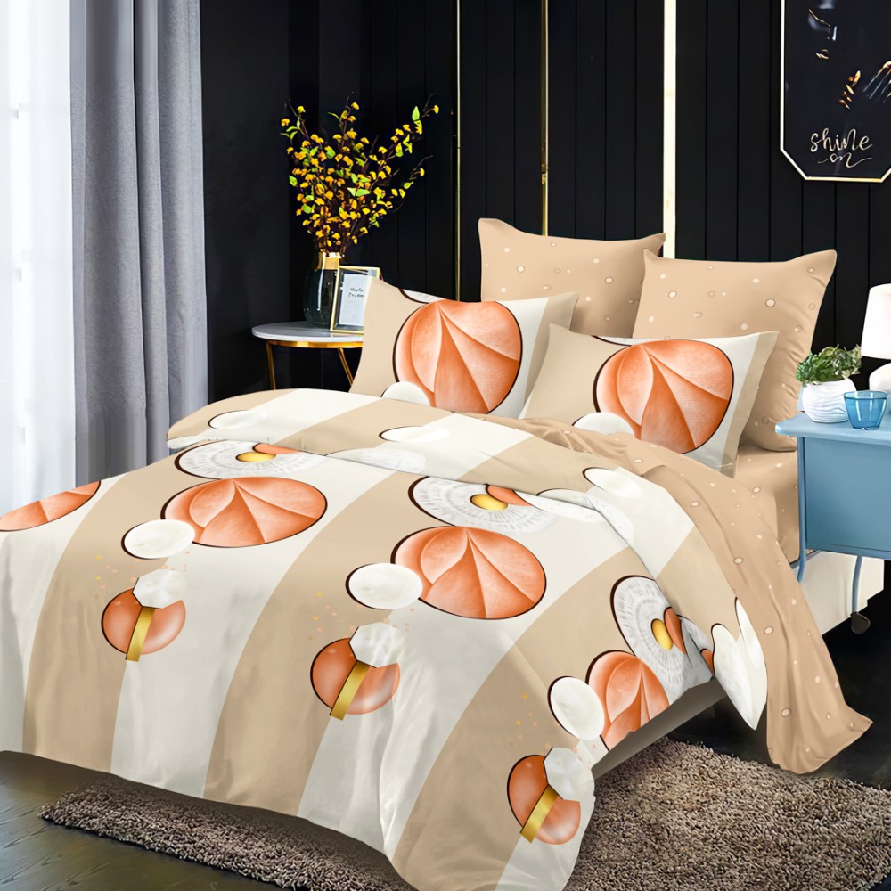 Lenjerie Pat Dublu, FINET, 6 piese, Bej, Oranj, Dungi, Cercuri, Super Design Pucioasa, cod produs: SDP-FNC-657