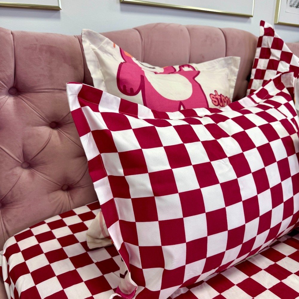 De asemenea, mentionam ca fetele de perna din seturile noastre pot include orice parte a designului lenjeriei, deoarece materialul este taiat secvential in timpul procesului de croiala. Aceasta poate duce la variatii de model intre seturi.