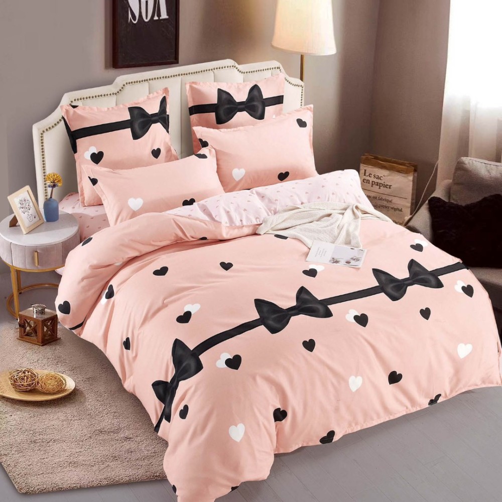 Lenjerie pat dublu, FINET, 6 piese, cu ELASTIC, Jojo Home, Roz Piersicuta, Fundite, cod produs: JOJ-FE-105