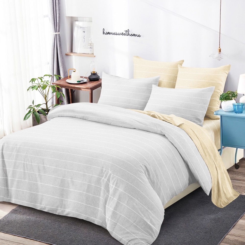 Lenjerie Pat Dublu, FINET, 6 piese, Gri, Bej, Dungi, Linii, Super Design Pucioasa, cod produs: SDP-FNC-106