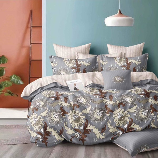 Lenjerie pat dublu, Finet, 6 piese, Gri, flori, Talo, cod produs: SKT-FN-47