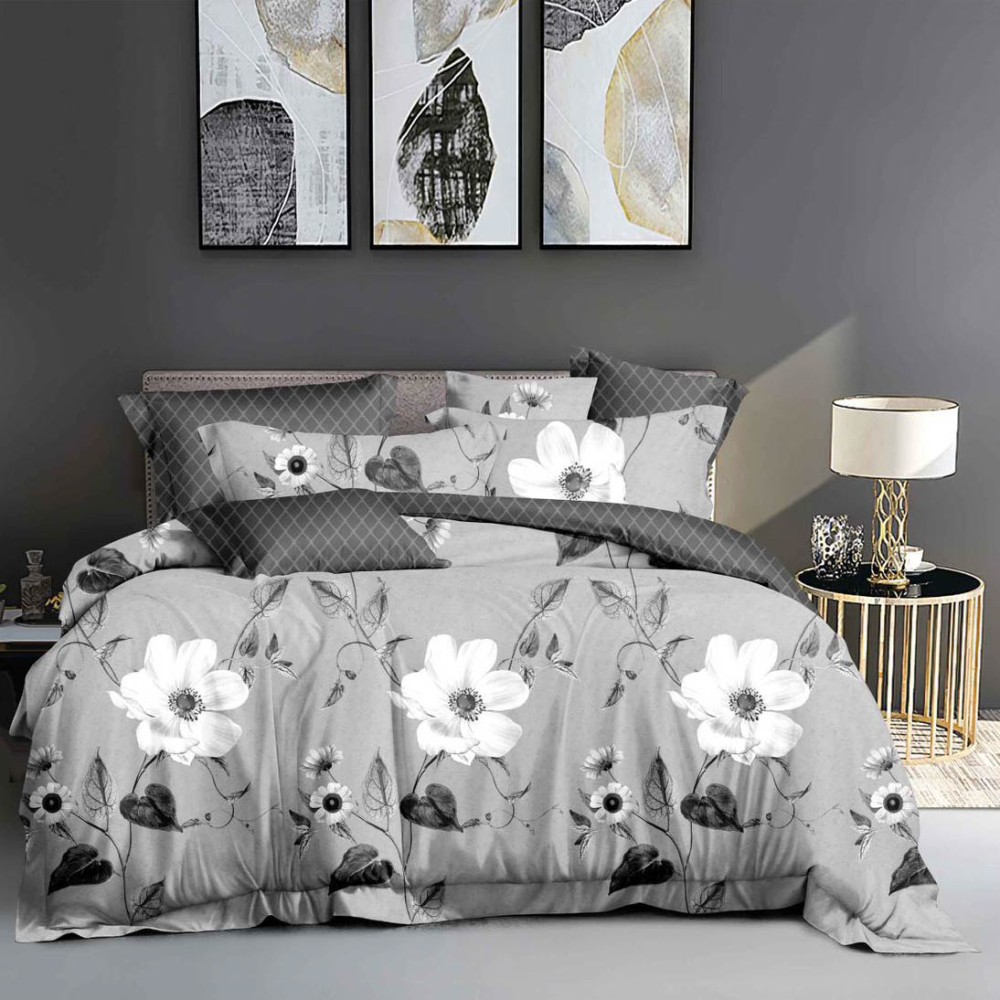 Lenjerie pat dublu, Finet, 6 piese, Gri, flori, Talo, cod produs: SKT-FN-56