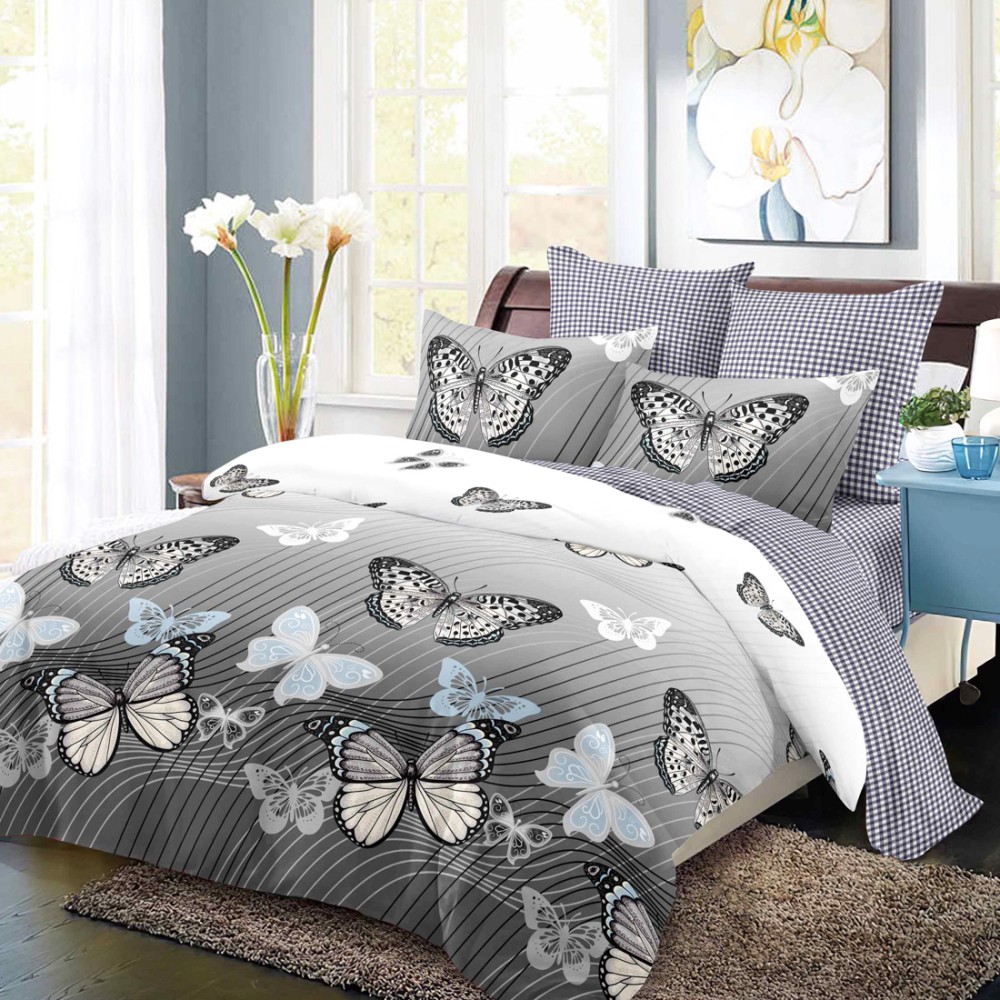 Lenjerie Pat Dublu, FINET, 6 piese, Gri, Fluturi, Super Design Pucioasa, cod produs: SDP-FNC-690