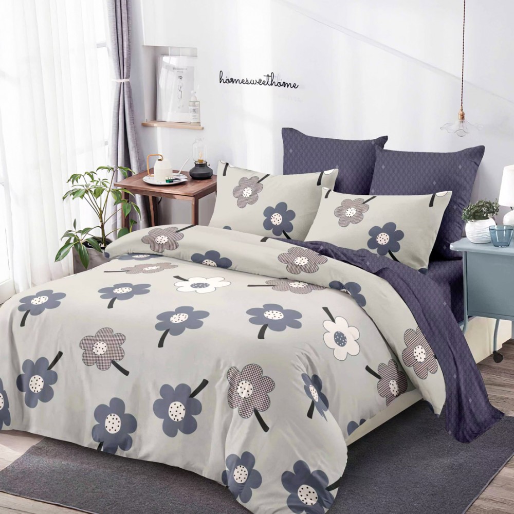 Lenjerie Pat Dublu, FINET, 6 piese, Gri, Mov, Flori, Super Design Pucioasa, cod produs: SDP-FNC-815