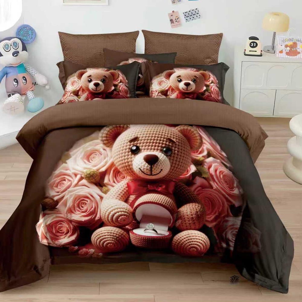 Lenjerie pat dublu, FINET, 6 piese, IDENTICA CU POZA, Bej, ursulet, Johny Home Pucioasa, cod produs: SPR-Q2a-58