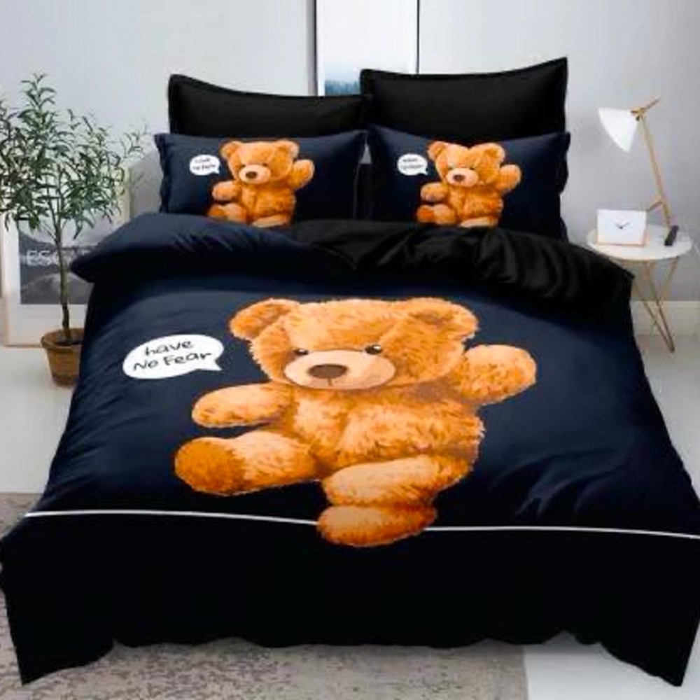 Lenjerie pat dublu, FINET, 6 piese, IDENTICA CU POZA, cu Imprimeu Digital, Negru, Maro, Ursulet, Casa Minunata, cod produs: YN-LDF-31