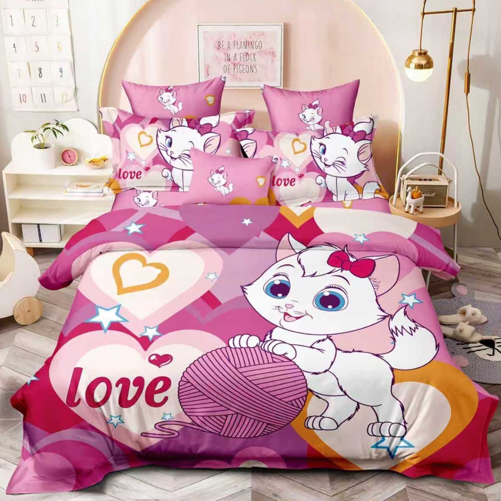 Lenjerie pat dublu, FINET, 6 piese, IDENTICA CU POZA, Roz, pisicuta, Johny Home Pucioasa, cod produs: SPR-Q2a-53