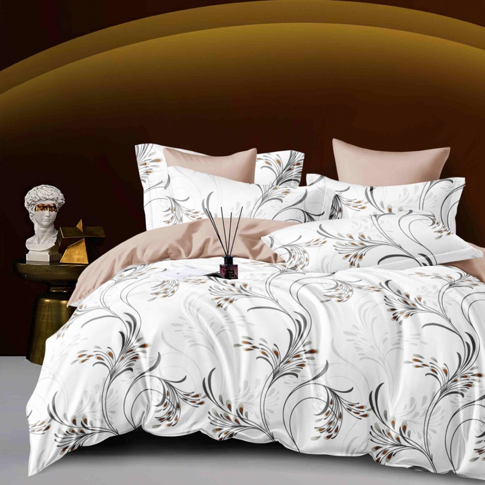 Lenjerie pat dublu, FINET, 6 piese, Jojo Home, Alb, Bej, flori, frunze, cod produs: JOJ-FN-83