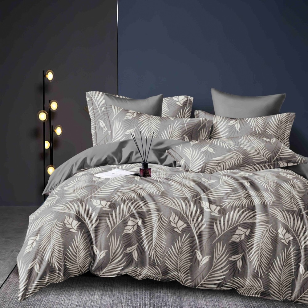 Lenjerie pat dublu, FINET, 6 piese, Jojo Home, Gri, frunze, cod produs: JOJ-FN-86