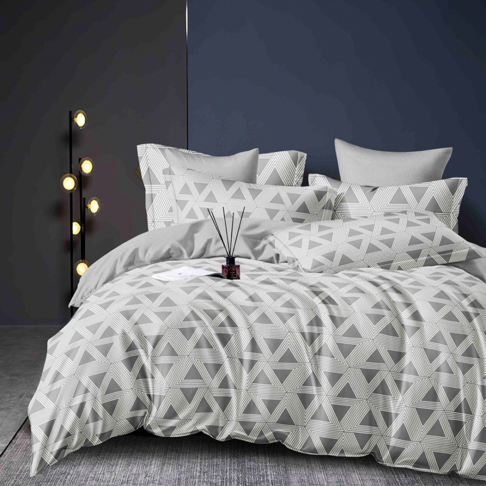 Lenjerie pat dublu, FINET, 6 piese, Jojo Home, Gri, triunghiuri, cod produs: JOJ-FN-82