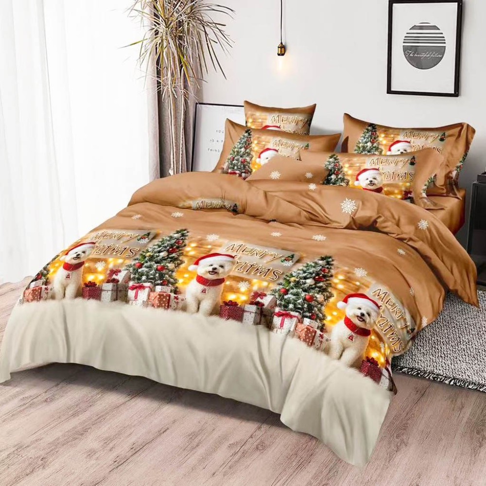 Lenjerie pat dublu, FINET, 6 piese, Mos Craciun, Bej, cod produs: BCC-FNX-14