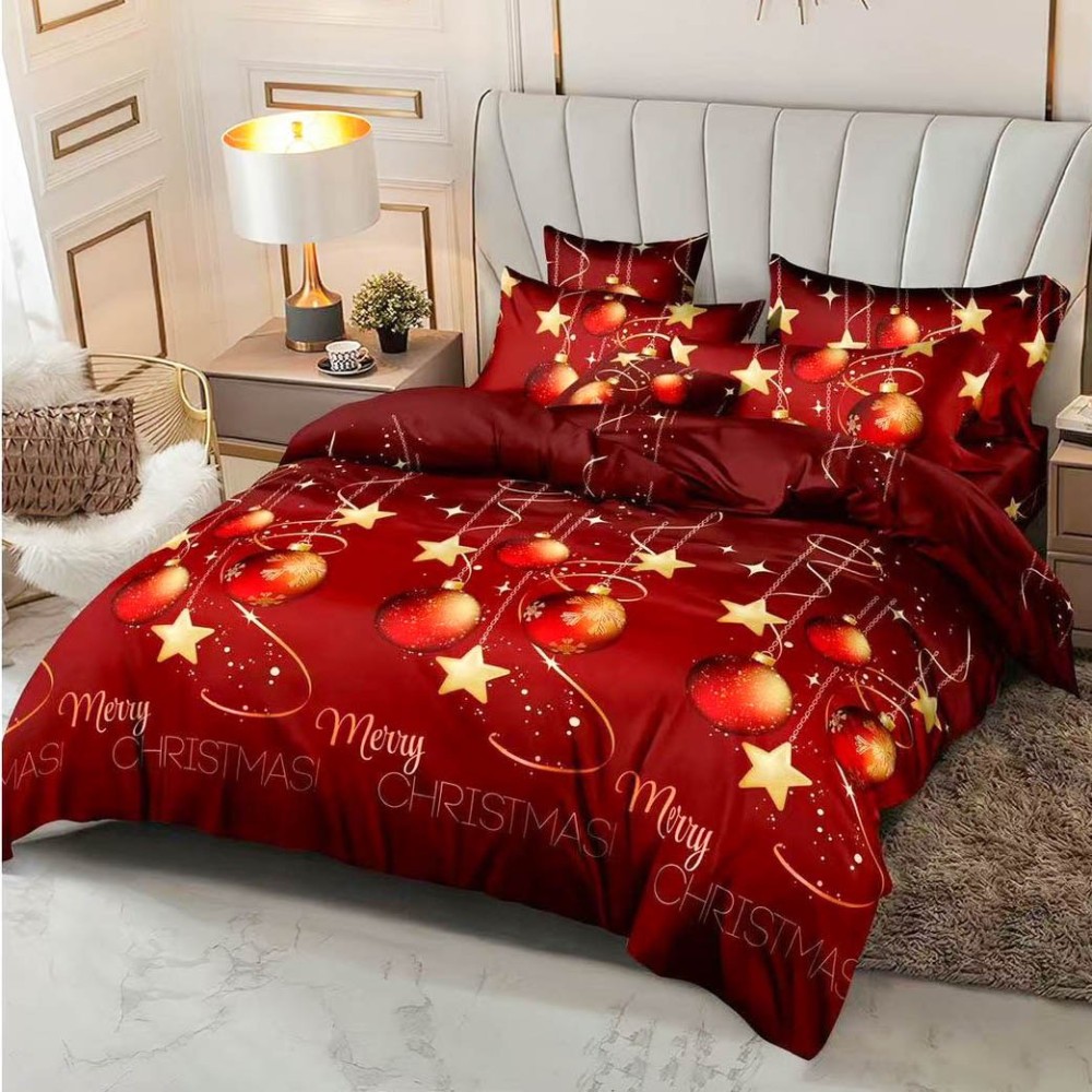 Lenjerie pat dublu, FINET, 6 piese, Mos Craciun, Rosu, cod produs: BCC-FNX-15